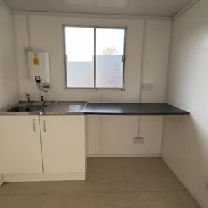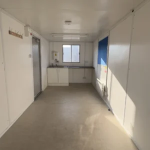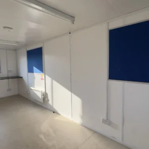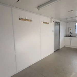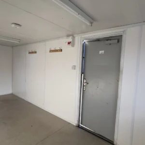 – The anti-vandal door to the office/canteen area, two single-glazed windows with anti-vandal external shutters.