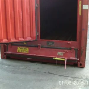 This is a 30ft size featuring non standard container doors with a ‘step in’ style personnel door, L-Shaped open and lower hatch. It also features man hole size hatches in the roof of the container.