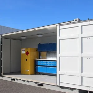 We’ve been building shipping container workshops for a long time, and we know what works in a portable shipping container workshop. Which is why we have a range of pre-designed workshop containers in 20′ and 40′ sizes.